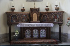propice au recueillement, met en valeur le retable et le tabernacle de l’ancien maître-autel. Il relate les scènes de la Nativité, de la Cène, de la Crucifixion et de l’Ascension. On notera la présence étonnante de Saint François d’Assises.
