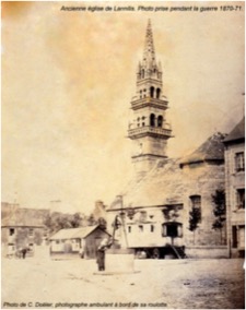 le 15 juillet 1865, l’église n’avait pas encore 100 ans. La prospérité nouvelle fit naître l’idée de l’agrandir et d’en surélever la nef. Le recteur Abgrall réussit progressivement, avec l’aide de l’architecte Joseph Bigot, à transformer ce projet en une reconstruction à neuf, conservant uniquement le clocher. Si la guerre de 1870 vint ralentir les choses, ce retard nous permet de disposer d’une photographie de l’église avant sa reconstruction.