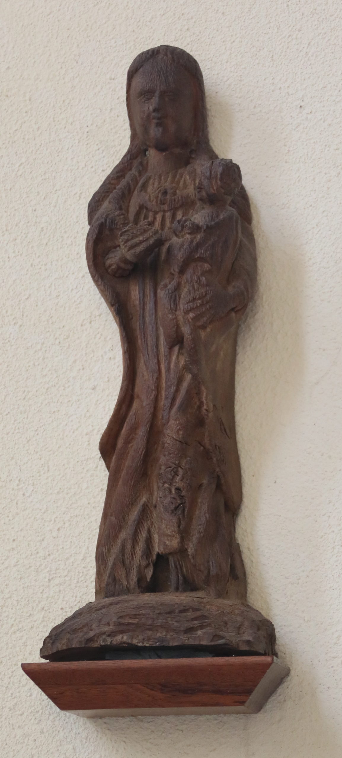 Une seconde, en bois, datée du XVème siècle et provenant de la même chapelle, se trouve dans la chapelle de la vitrine d’orfèvrerie religieuse.