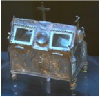 un petit reliquaire pendentif du XIIème siècle, deux coffrets à reliques du XVème siècle et un du XVIème siècle, plusieurs ciboires et calices du XVIIème siècle, Coquille de baptême et Boite aux saintes huiles du XVIIème siècle.